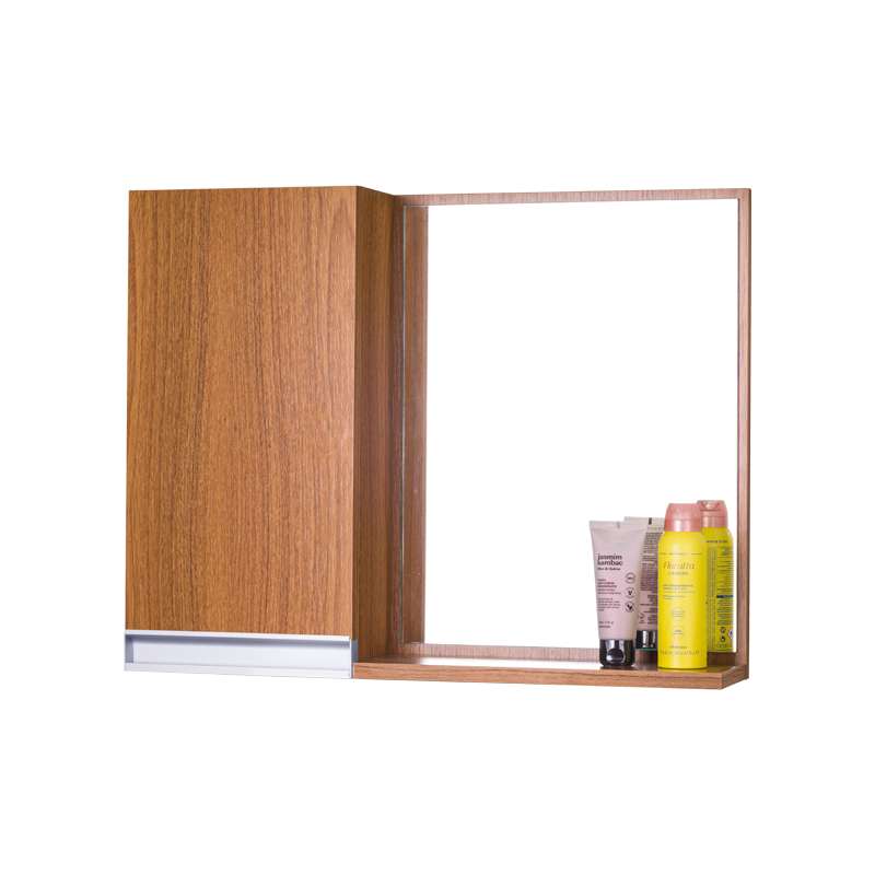 Armário para Banheiro com Espelho na cor Freijó é ideal para organizar vários itens. Possui prateleira interna em vidro, armário com porta e amplo espelho. É a escolha perfeita para seu banheiro.
