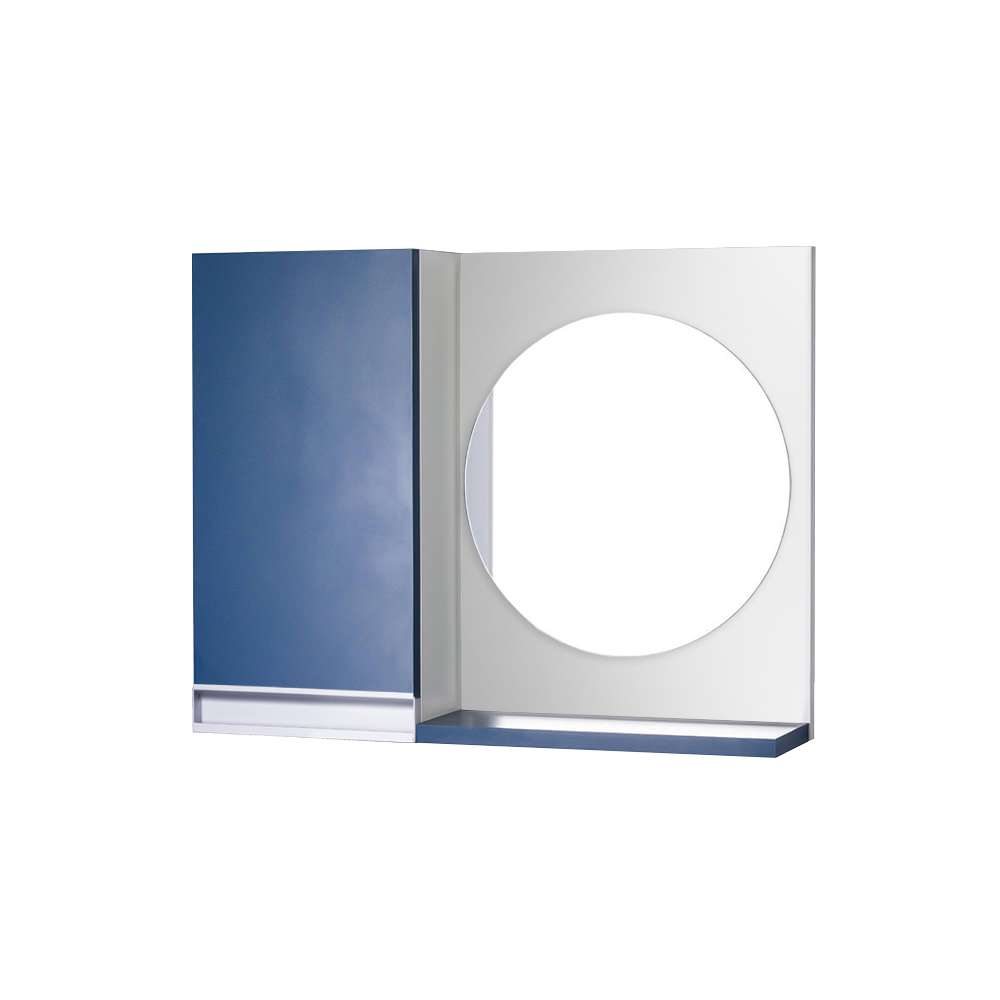 Armário para Banheiro com Espelho Redondo Azul com Puxador de Metal. Já vem montado, pronto para colocar na parede. É só abrir a caixa e instalar em seu banheiro. Acompanha 2 parafusos com buchas para instalar na parede.