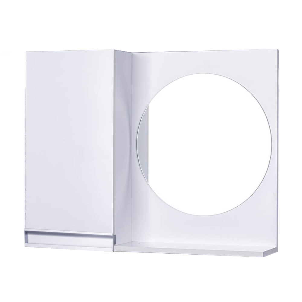 Armário para Banheiro com Espelho Redondo Branco com Puxador de Metal. Já vem montado, pronto para colocar na parede. É só abrir a caixa e instalar em seu banheiro. Acompanha 2 parafusos com buchas para instalar na parede.