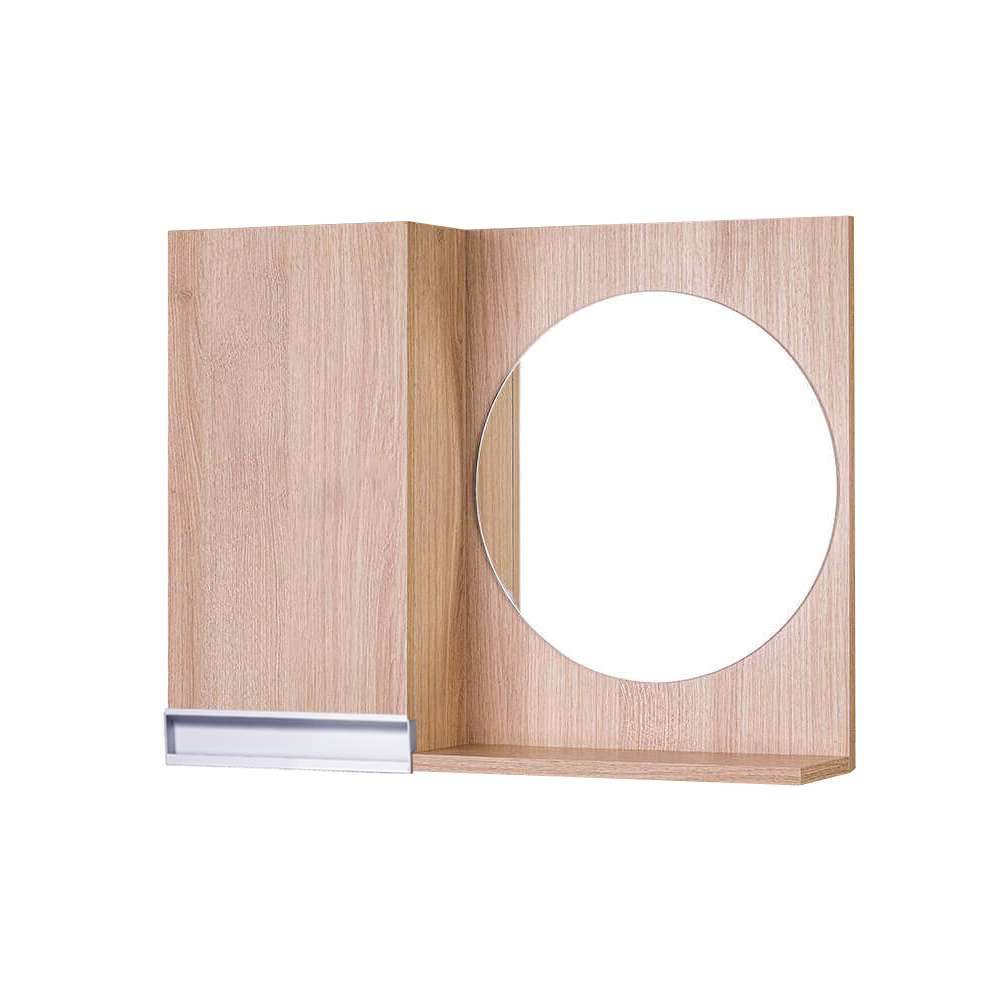 Armário para Banheiro com Espelho Redondo Carvalho com Puxador de Metal. Já vem montado, pronto para colocar na parede. É só abrir a caixa e instalar em seu banheiro. Acompanha 2 parafusos com buchas para instalar na parede.