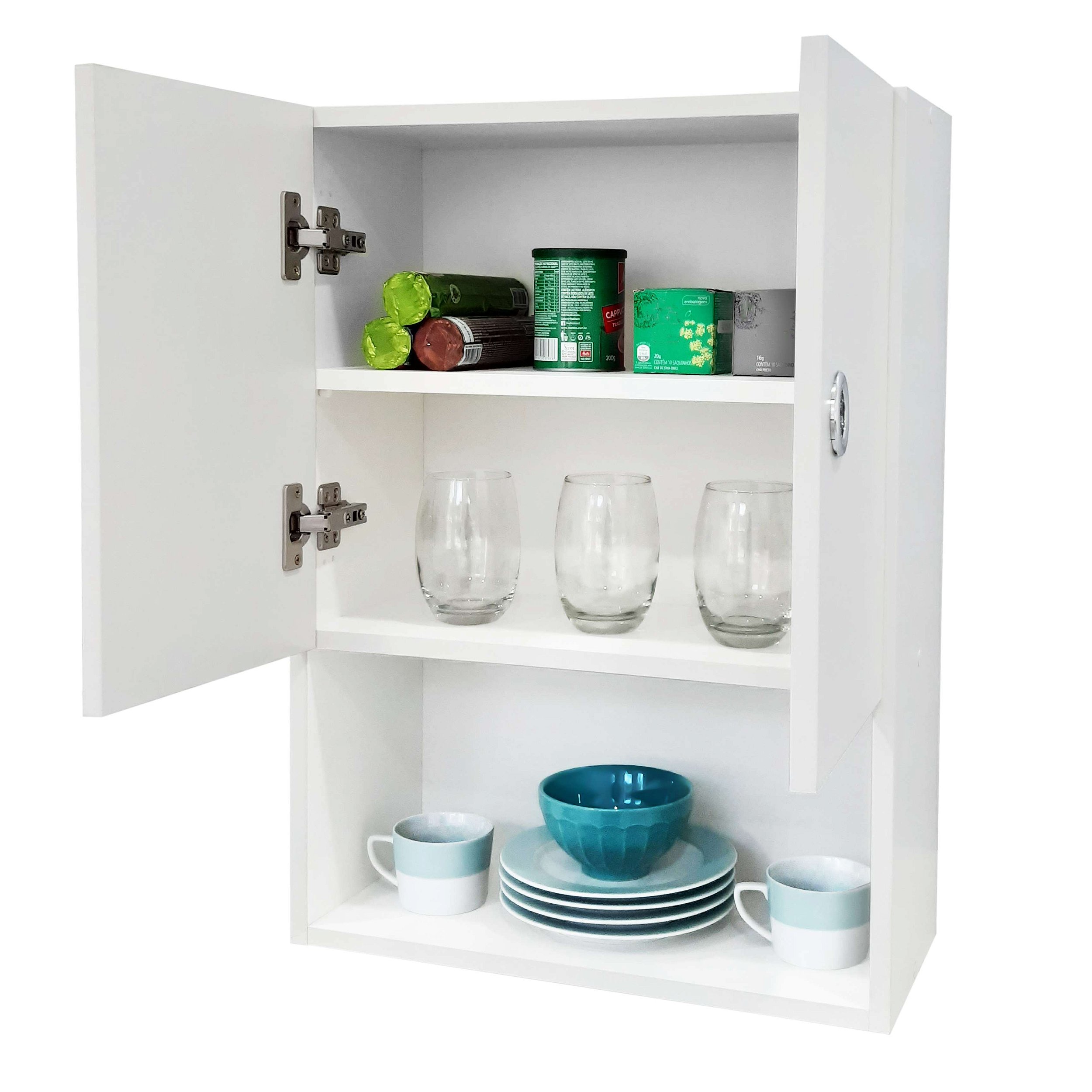 O Armário para Cozinha Dallas foi projetado para proporcionar praticidade e fácil organização para o seu lar. Feito em MDP, o produto possui duas portas que abrigam a prateleira do interior do móvel, lugar perfeito para armazenar panos, louças, toalhas, comida e o que mais você desejar. O nicho na parte externa do produto é ideal para armazenar objetos menores, decorações e itens que requerem um fácil acesso.