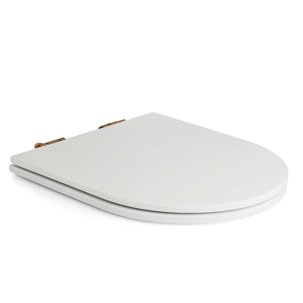 O destaque deste produto está em seu design de linhas retas, na qualidade de seus materiais e acabamentos modernos. A ferragem é em latão cromado na cor Rose Gold, o mais nobre e sofisticado para assentos sanitários.