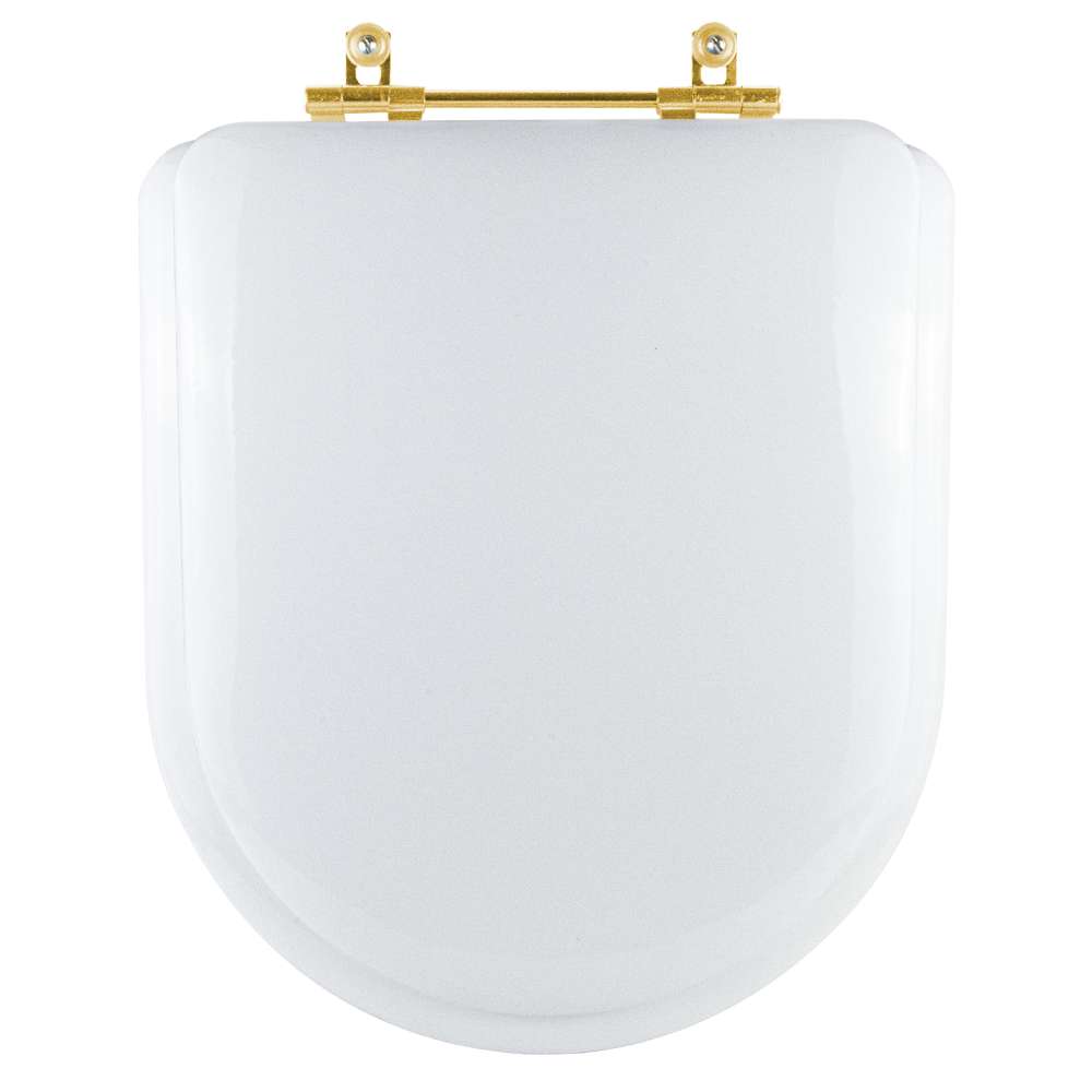 O Assento Sanitário Almofadado Carrara Branco para vaso Deca com Ferragem Dourada é a opção ideal para quem busca combinar conforto com elegância em seu banheiro.