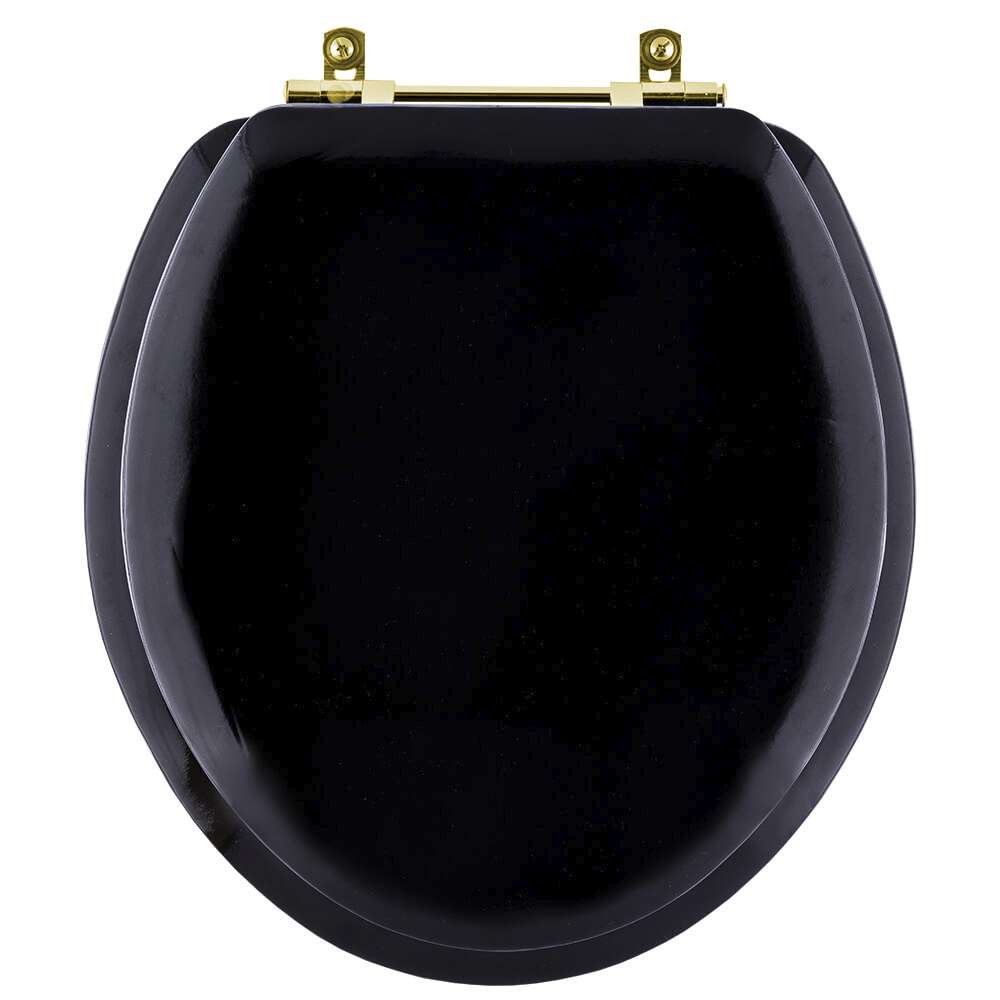 O Assento Sanitário Almofadado Convencional Universal Preto com Ferragem Dourada é a opção ideal para quem busca combinar conforto com elegância em seu banheiro.