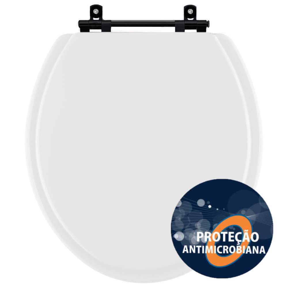O Assento Sanitario Antimicrobiano Convencional Oval Universal Branco com Ferragem Preta é a escolha definitiva para elevar o padrão de higiene e sofisticação do seu banheiro!