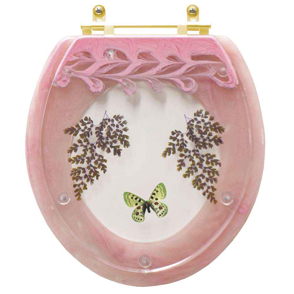 O Assento Sanitário Decorado Oval Convencional Rosa Quartzo Com Borboleta Verde para todas as marcas Com Ferragem Dourada é a opção ideal para quem busca combinar funcionalidade com elegância em seu banheiro.