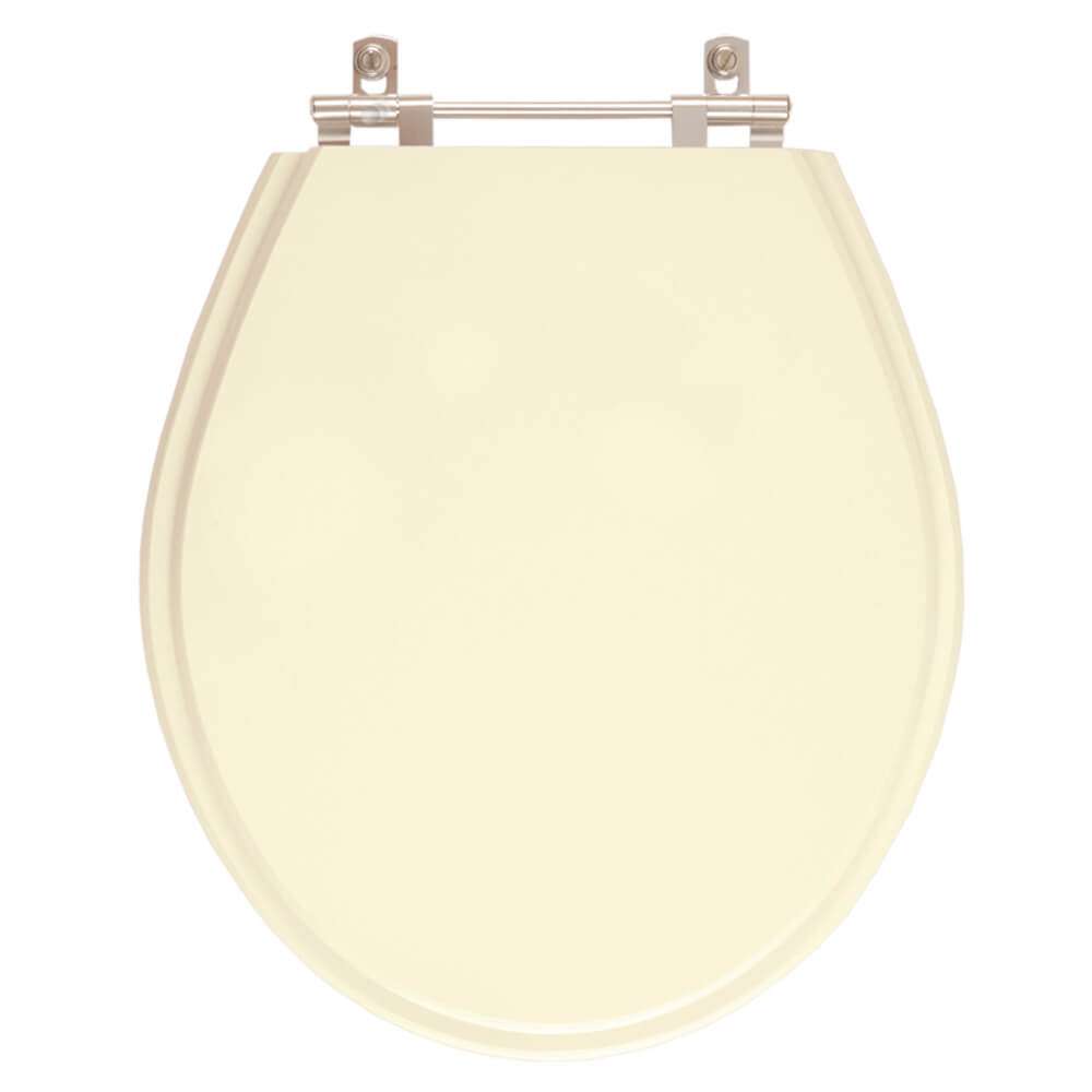 O encaixe do assento sanitário no vaso é feito por uma ferragem metálica que não oxida e não enferruja.