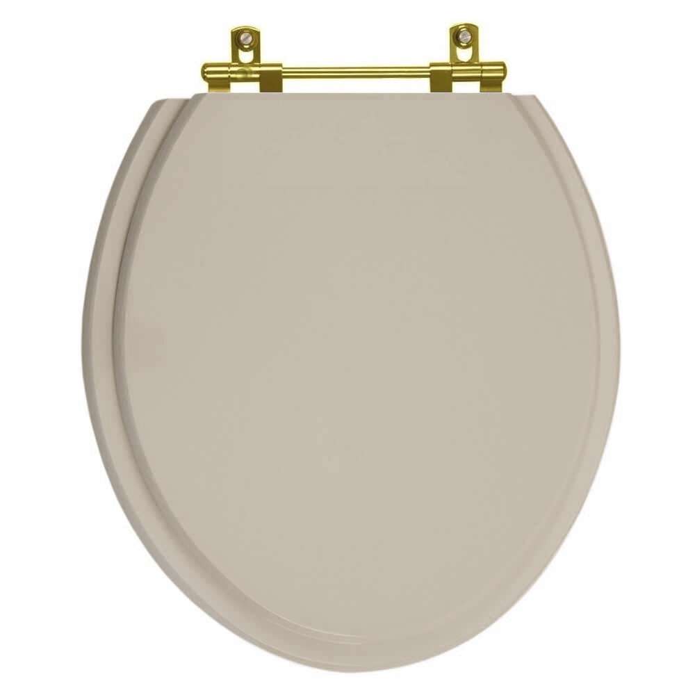 O Assento Sanitario Poliéster Convencional Oval Bege Saara para vaso Deca com Ferragem Dourada é a opção ideal para quem busca combinar funcionalidade com elegância em seu banheiro.