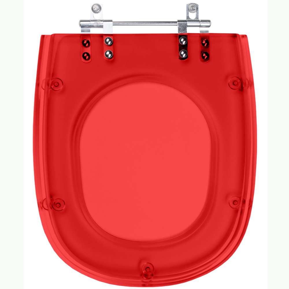 Este assento de vaso sanitário Vogue Plus cor Vermelho Translúcido é produzido em resina maciça de poliéster. O poliéster é uma resina semelhante ao acrílico, só que mais robusta / resistente. Por isso, é totalmente impermeável, pode ser lavado com água à vontade. Fácil de limpar. Não acumula sujeira.