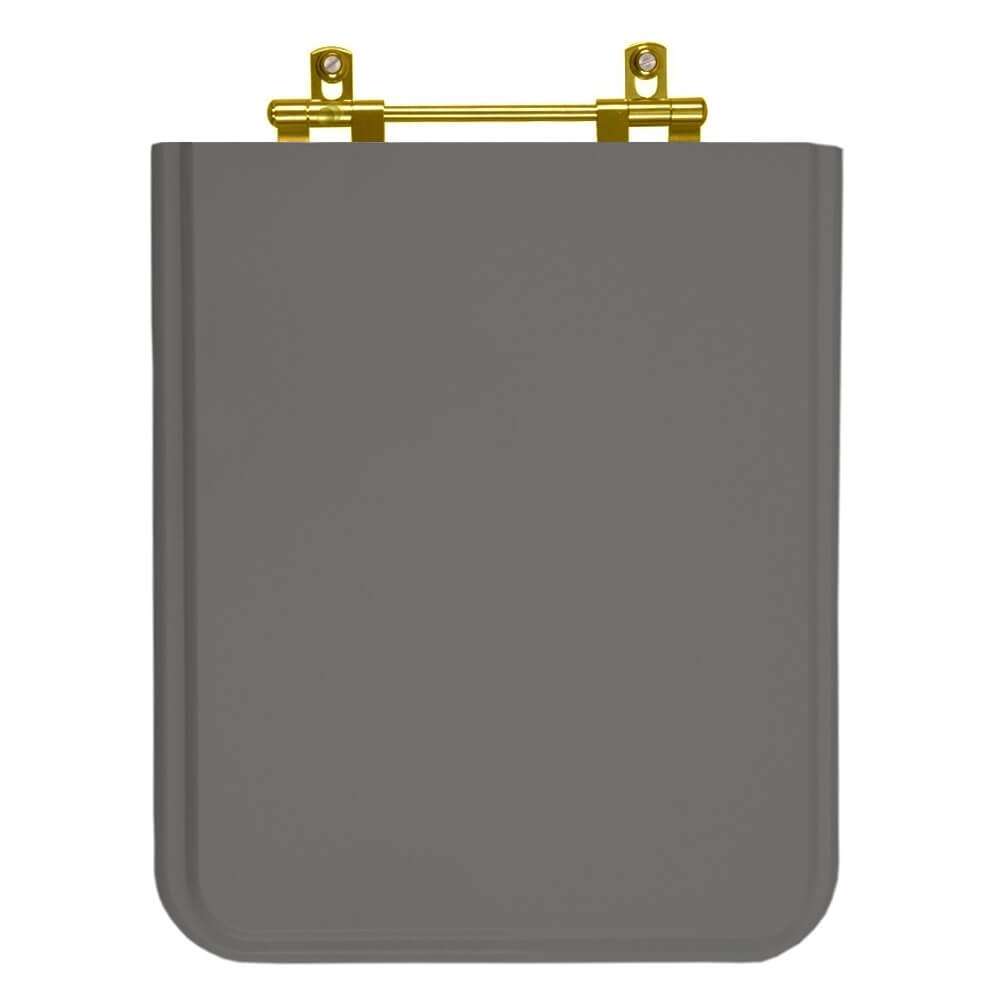 O Assento Sanitário Square Ambar (Cinza Escuro) para vaso Incepa com Ferragem Dourada é a opção ideal para quem busca combinar funcionalidade com elegância em seu banheiro.