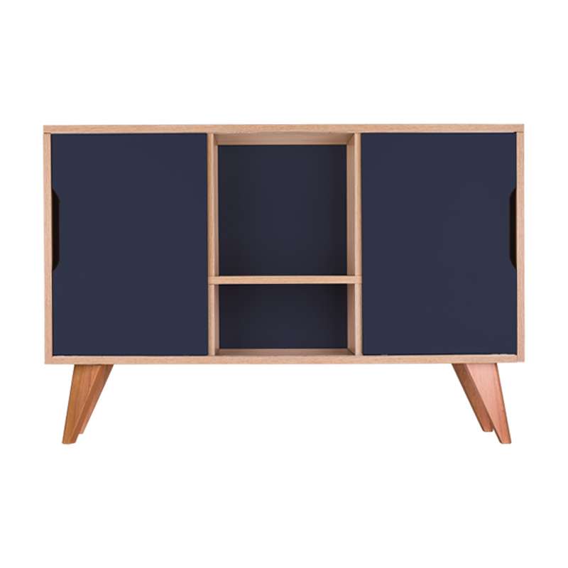 Buffet / Aparador / Balcão Retrô Modelo Murano cor Carvalho Treviso com 2 portas Azul Marinho, o móvel perfeito para deixar seu ambiente com estilo e organizado.
