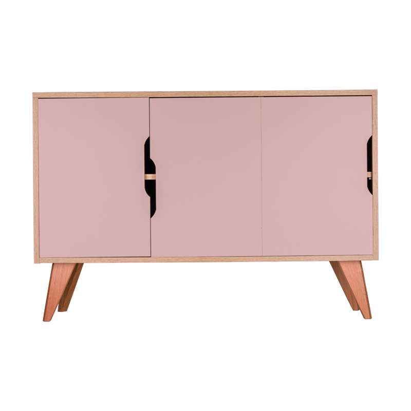 Cor do Móvel: Carvalho Treviso (Madeira Clara) com portas Rosa Claro.