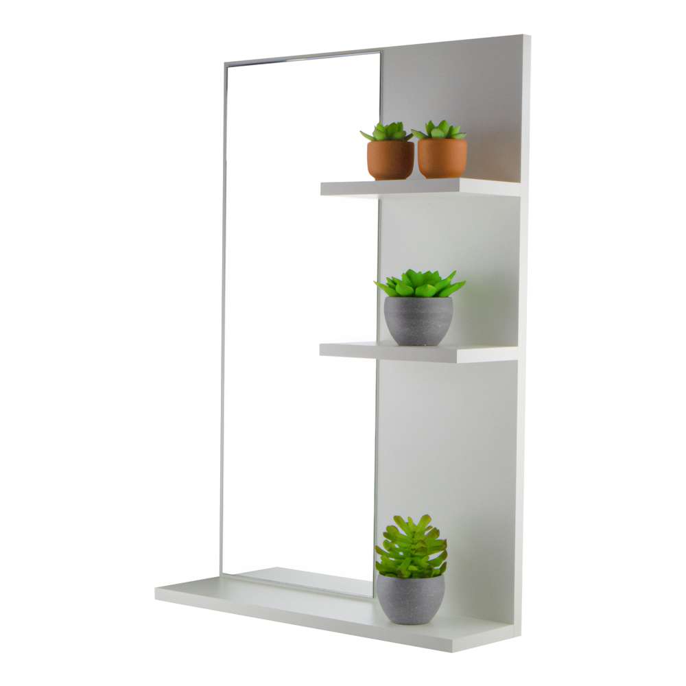 A espelheira Liege possui 3 prateleiras externas para guardar e organizar os itens de higiene pessoal e acessórios do seu banheiro, além de acompanhar um espelho amplo proporcionando um uso prático e agradável.
