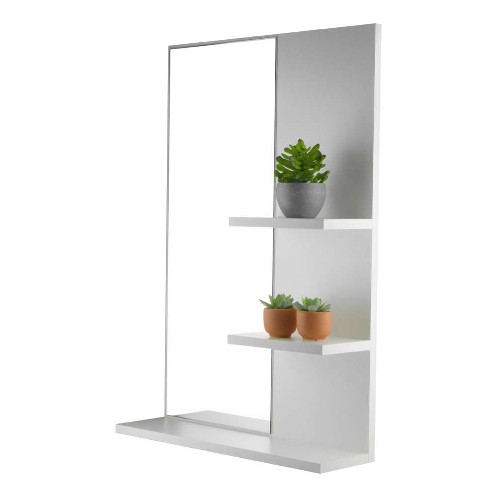 A espelheira Liege possui 3 prateleiras externas para guardar e organizar os itens de higiene pessoal e acessórios do seu banheiro, além de acompanhar um espelho amplo proporcionando um uso prático e agradável.