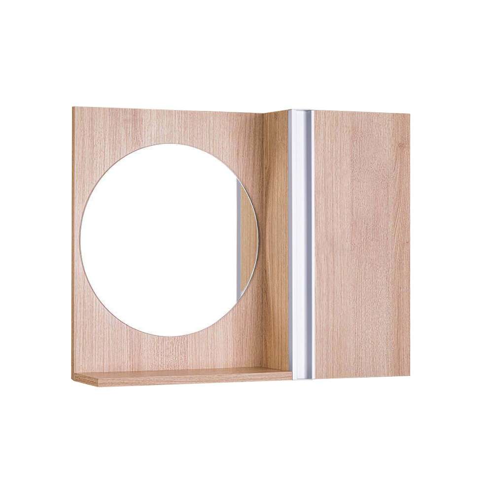 Espelho Redondo para Banheiro com Armário Carvalho com Barra Vertical. Já vem montado, pronto para colocar na parede. É só abrir a caixa e instalar em seu banheiro. Acompanha 2 parafusos com buchas para instalar na parede.