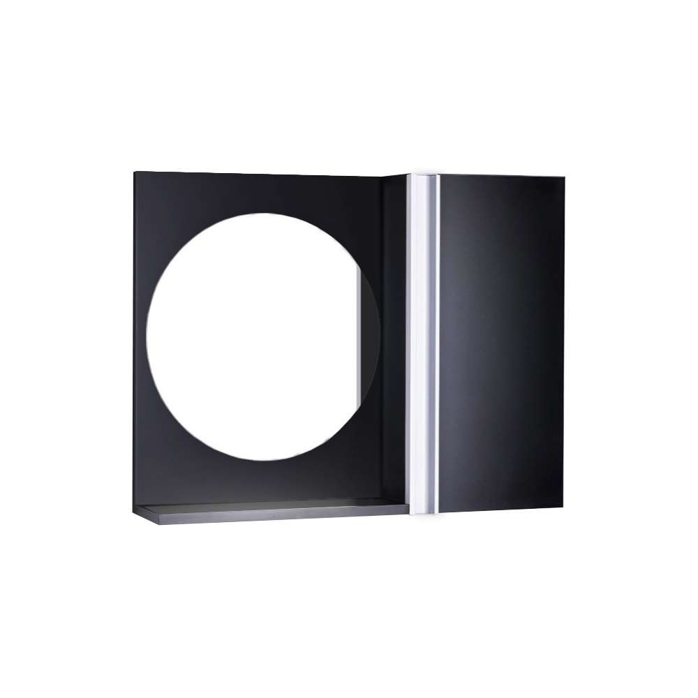 Espelho Redondo para Banheiro com Armário Preto com Barra Vertical. Já vem montado, pronto para colocar na parede. É só abrir a caixa e instalar em seu banheiro. Acompanha 2 parafusos com buchas para instalar na parede.