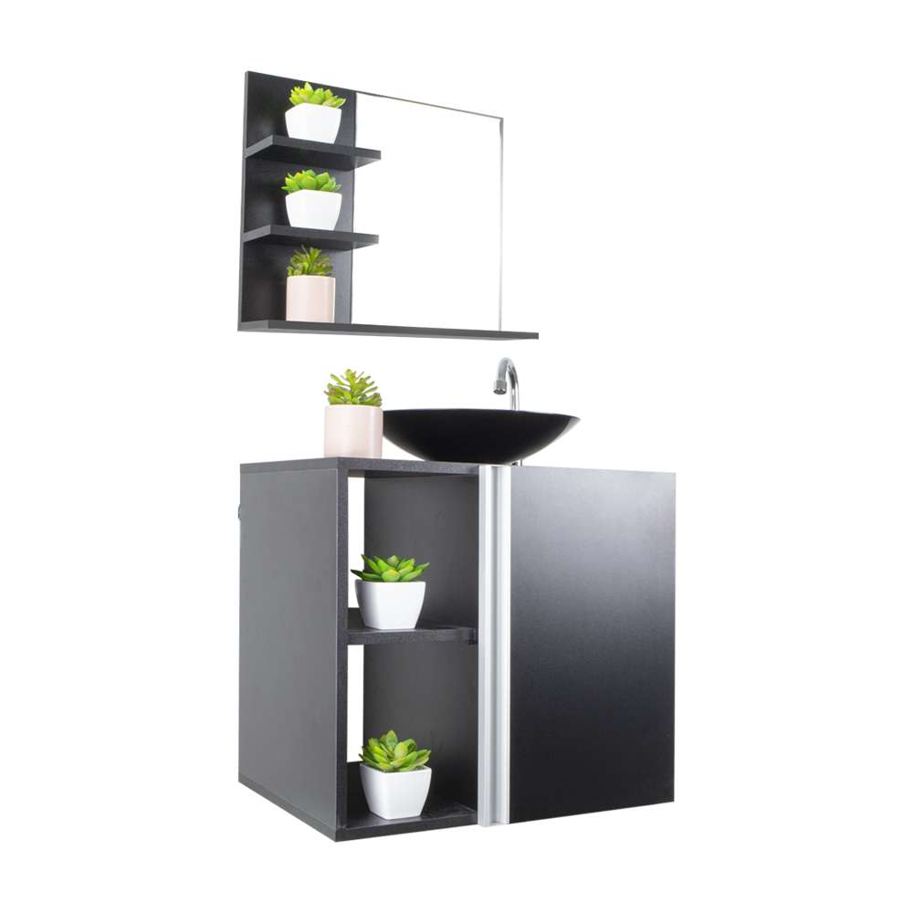 Produto de madeira MDP 15mm com revestimento de maior resistência e durabilidade, na cor Preto. A Cuba é em Resina de Poliéster na cor Preto, material robusto, brilhante e de excelente acabamento, não é mármore sintético e nem plástico. Muito linda e elegante.