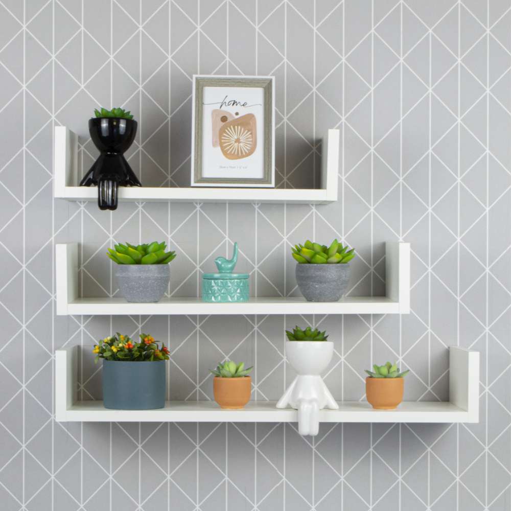 O Jogo 3 Prateleiras U MDF Branco Nicho Bebe Sala Quarto Cozinha é perfeita expor seus livros favoritos e coleções, garantindo um charme e delicadeza ao seu ambiente.