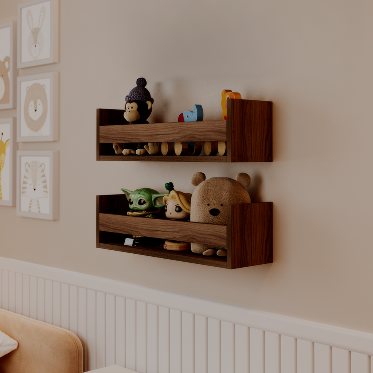 Kit 2 Prateleiras Porta Brinquedos Nogal 50 x 12cm Suporte Invisivel é perfeita para tornar o seu ambiente mais criativo e moderno.