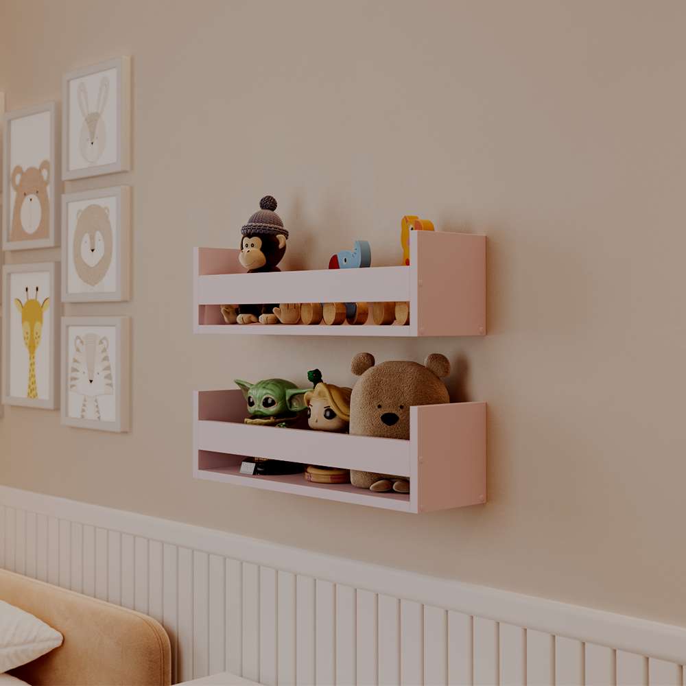Kit 2 Prateleiras Porta Brinquedos Rosa 50 x 12cm Suporte Invisivel é perfeita para tornar o seu ambiente mais criativo e moderno.