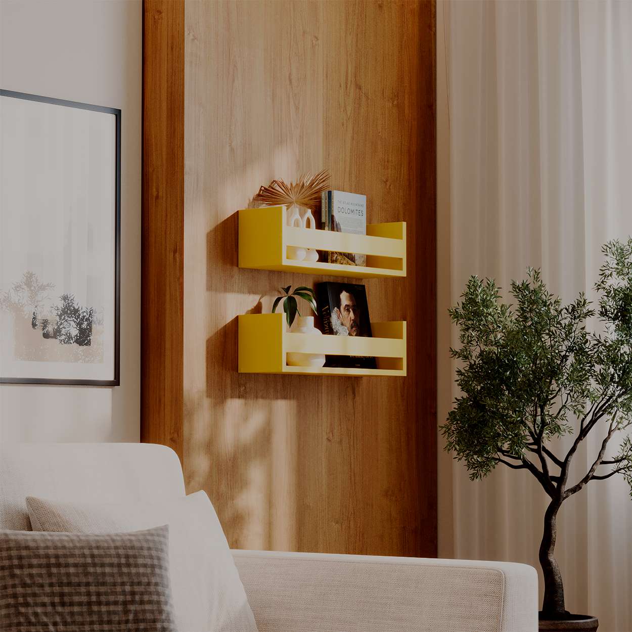 Kit 2 Prateleiras Porta Objetos Amarela 60 x 12cm Suporte Invisivel é perfeita para tornar o seu ambiente mais criativo e moderno.