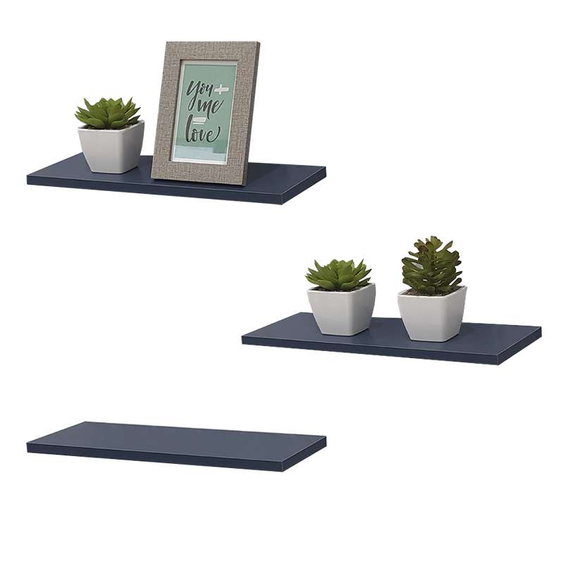 Kit 3 Prateleiras 80 x 10cm azul Suporte Invisível. A prateleira Crie Fácil foi desenvolvida pensando em deixar o seu ambiente mais organizado e criativo de forma prática e simples.