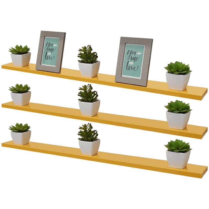 Kit 3 Prateleiras 80 x 20cm Amarela Suporte Invisível. A prateleira Crie Fácil foi desenvolvida pensando em deixar o seu ambiente mais organizado e criativo de forma prática e simples.