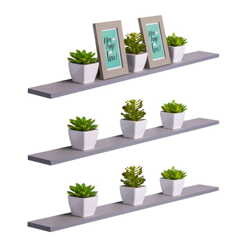 Kit 3 Prateleiras 80 x 20cm Cinza Claro Suporte Invisível. A prateleira Crie Fácil foi desenvolvida pensando em deixar o seu ambiente mais organizado e criativo de forma prática e simples.