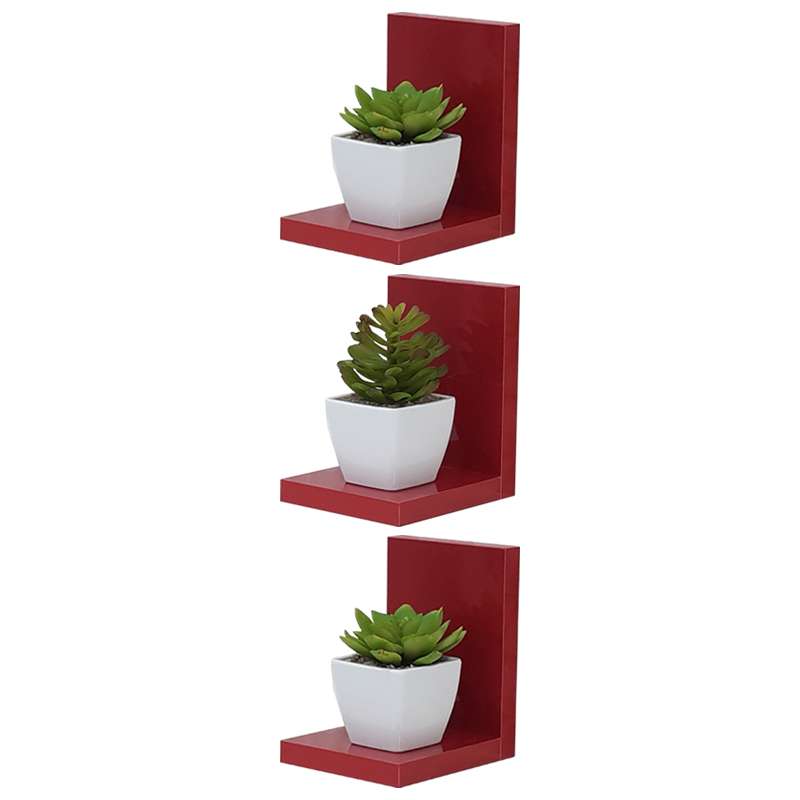 O Kit 3 Prateleiras em L 15 x 12cm Vermelho é a escolha perfeita para completar aquele cantinho especial da sua casa. Estas prateleiras pequenas vermelhas podem ser decoradas com pequenos vasos de plantas, estatuetas, porta retratos e outros objetos decorativos. Perfeitas para usar como porta troféus em quarto infantil. Muito versáteis, podem ser usadas para decoração de sala, quarto, escritório e até cozinha.