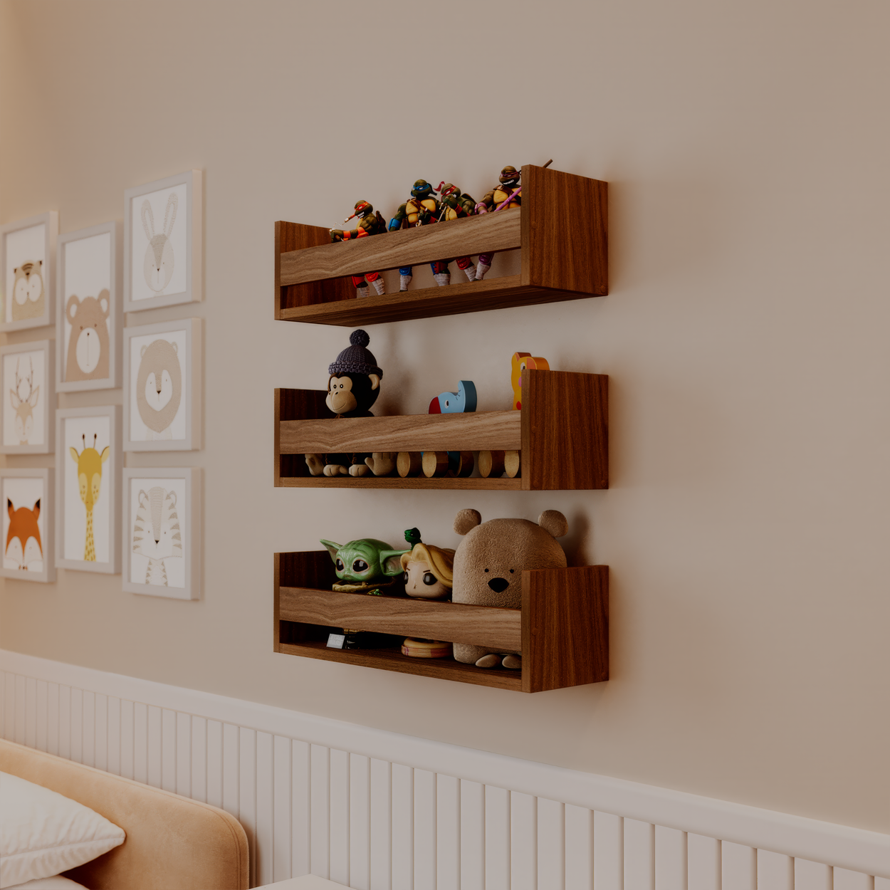 Kit 3 Prateleiras Porta Brinquedos Freijó 50 x 12cm Suporte Invisivel é perfeita para tornar o seu ambiente mais criativo e moderno.
