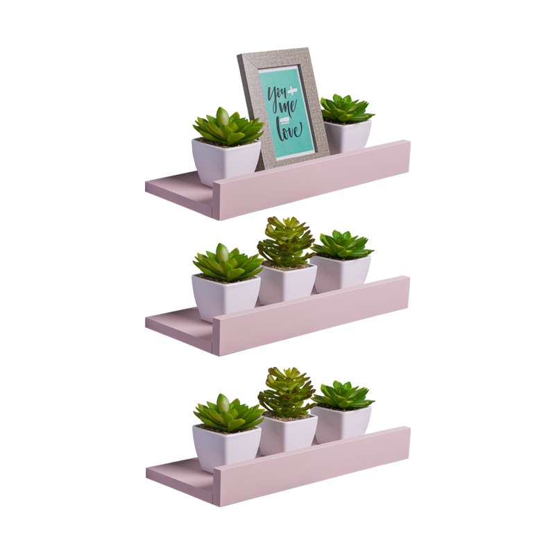 Kit 3 Prateleiras Porta Quadros 30 x 15cm Rosa Claro Suporte Invisível. A prateleira Crie Fácil foi desenvolvida pensando em deixar o seu ambiente mais organizado e criativo de forma prática e simples.