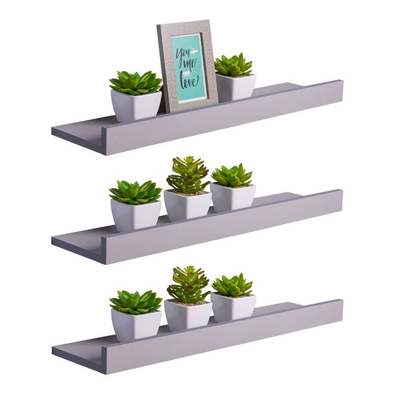 Kit 3 Prateleiras Porta Quadros 70 x 15cm Cinza Claro Suporte Invisível. A prateleira Crie Fácil foi desenvolvida pensando em deixar o seu ambiente mais organizado e criativo de forma prática e simples.
