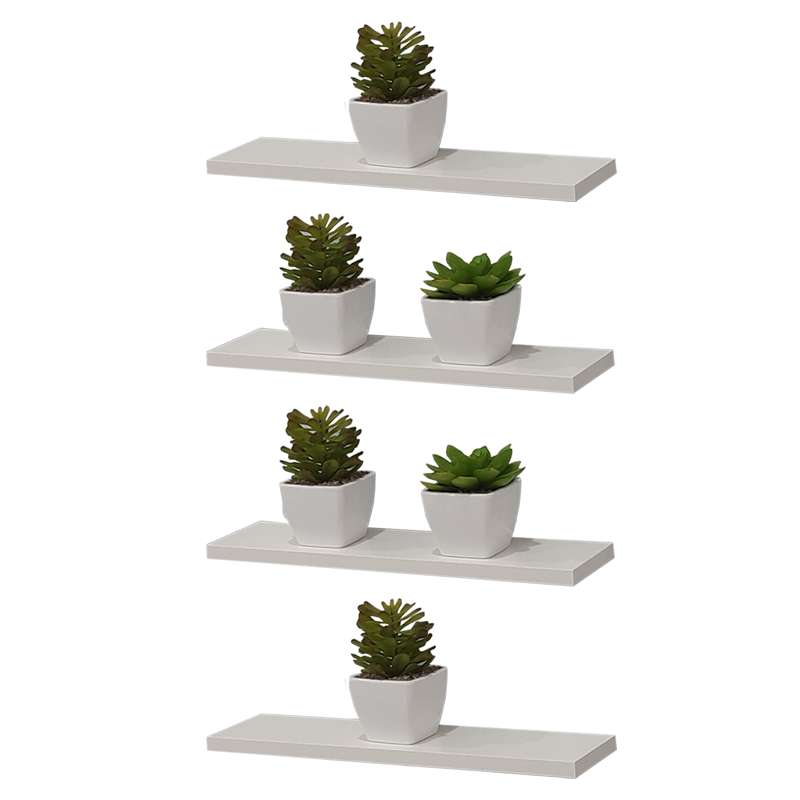 O Kit 4 Prateleira Branca MDF 40 x 20cm Suporte Invisível foi desenvolvido pensando em deixar o seu ambiente mais criativo e moderno de forma simples e prática.