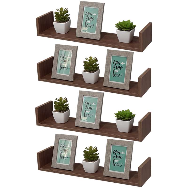 Kit 4 Prateleiras U 50 x 15cm Nogal Suporte Invisível. A prateleira Crie Fácil foi desenvolvida pensando em deixar o seu ambiente mais organizado e criativo de forma prática e simples.