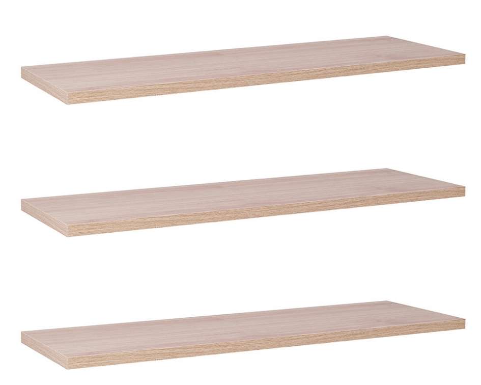 Kit com 3 Prateleiras de Madeira na cor Carvalho Treviso (Madeira Clara) 40cm x 10cm x 1,5cm Com Suporte de Embutir (Invisível).
