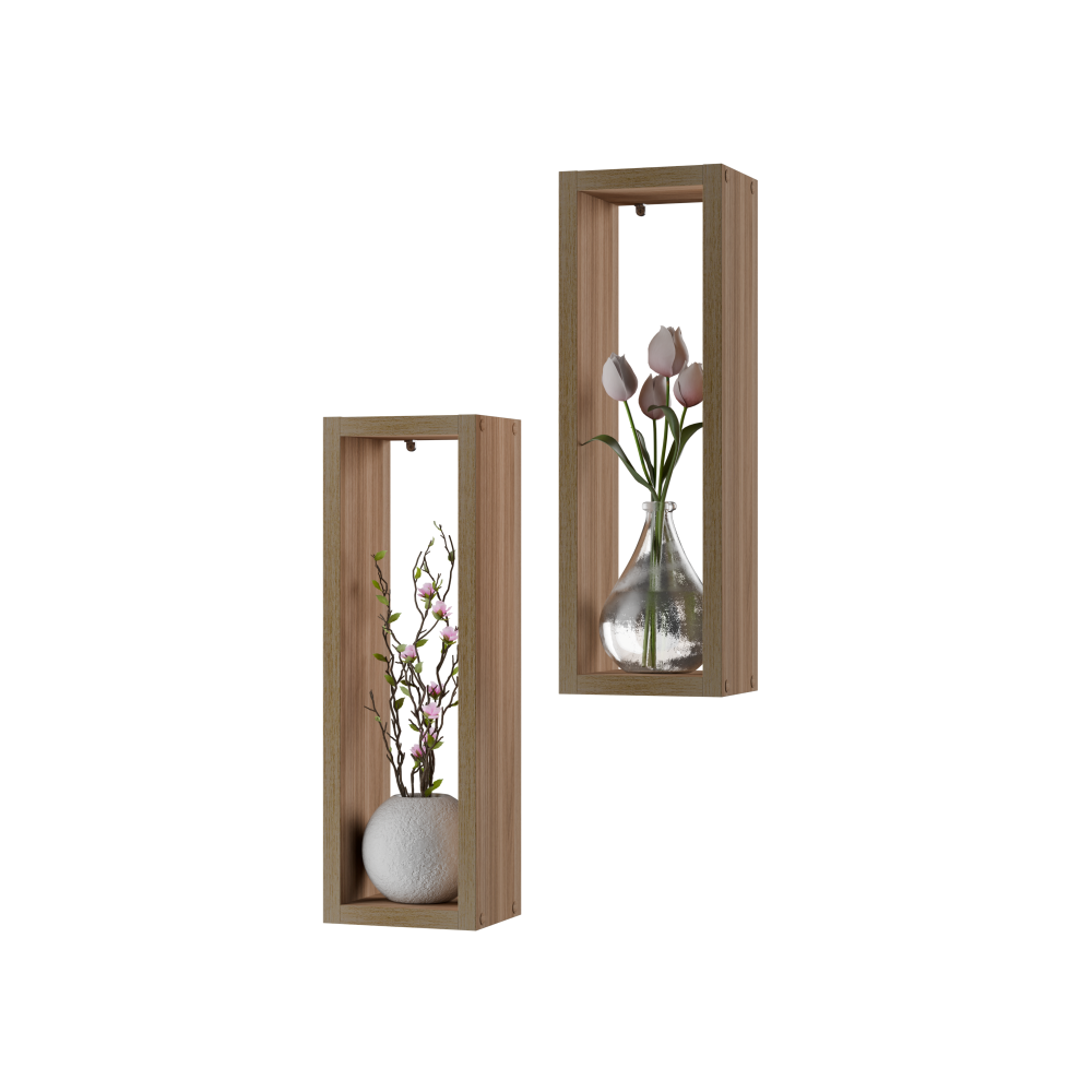 Perfeito para exibir pequenos vasos de flor, miniaturas ou peças de arte, esse kit adiciona um toque de organização ao ambiente.