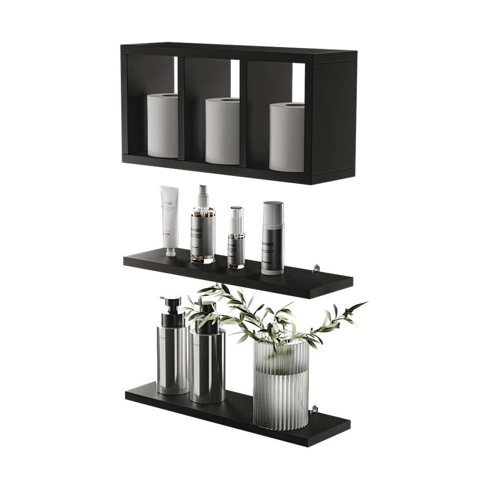 O Kit Nichos Prateleiras Provença Para Banheiro Decorativo Preto é a escolha perfeita para quem busca criatividade e organização de espaço no banheiro.