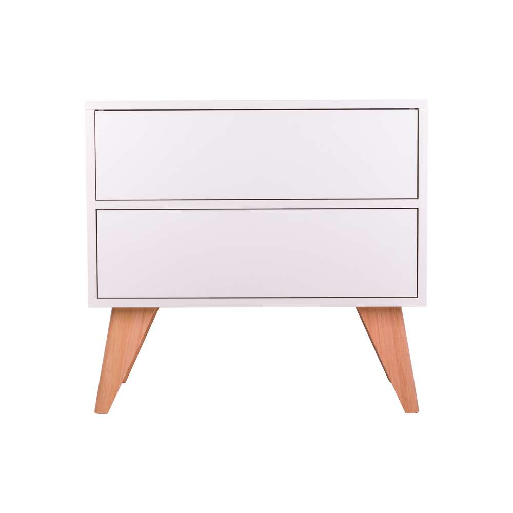 Mesa de Cabeceira Modelo Bréscia na cor Branco traz organização com estilo para o seu quarto. Possui lindos pés torneados em diagonal.