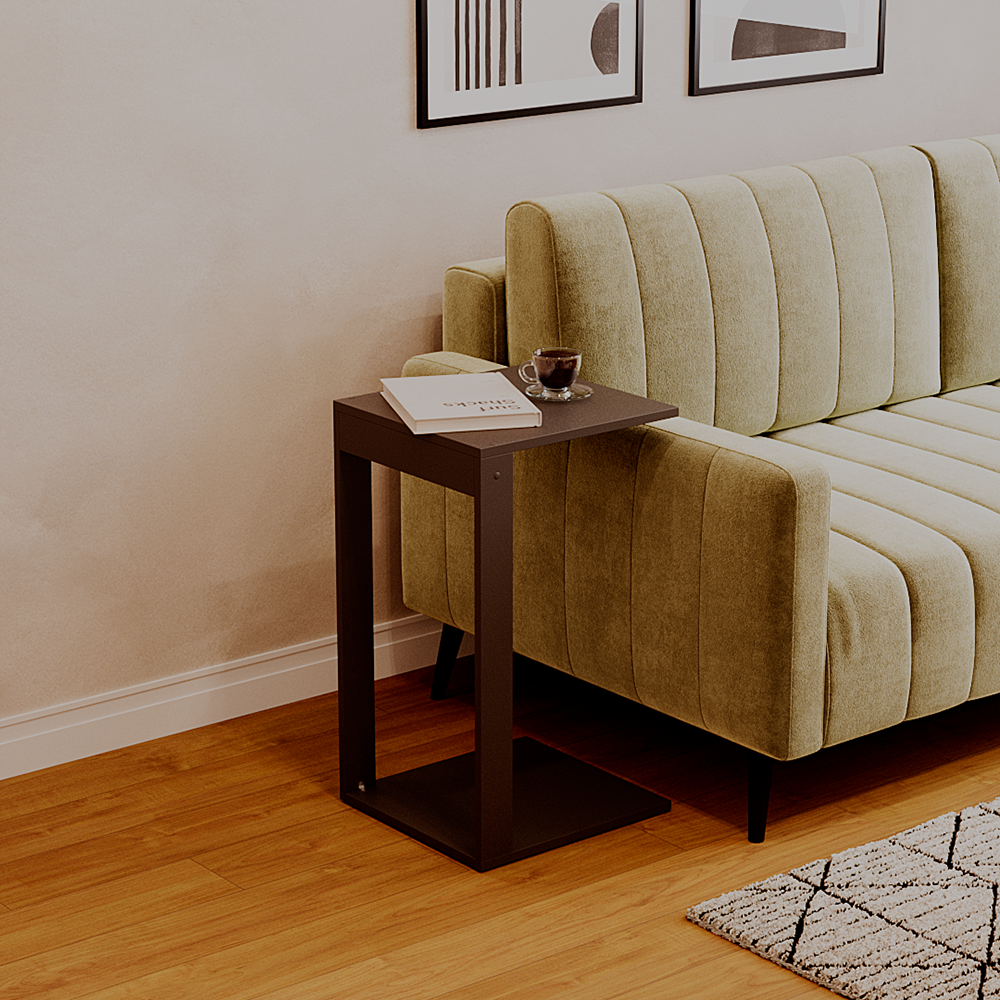Com design compacto, esta mesinha é perfeita para otimizar o ambiente, oferecendo um suporte versátil para livros, bebidas, laptops e outros itens essenciais do dia a dia.