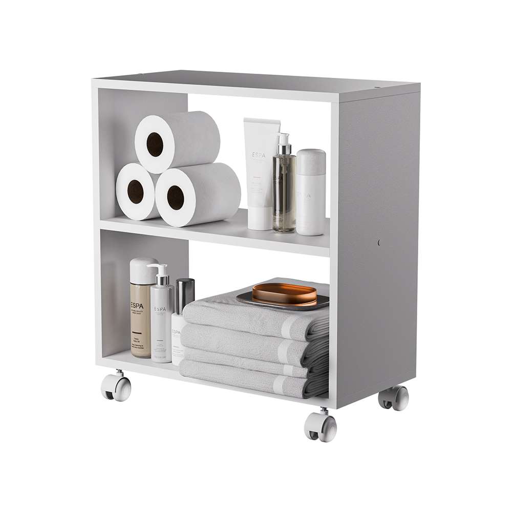 O Móvel Organizador Multiuso para Banheiro com Rodinhas Branco é a solução ideal para otimizar o espaço e a organização em seu banheiro!
