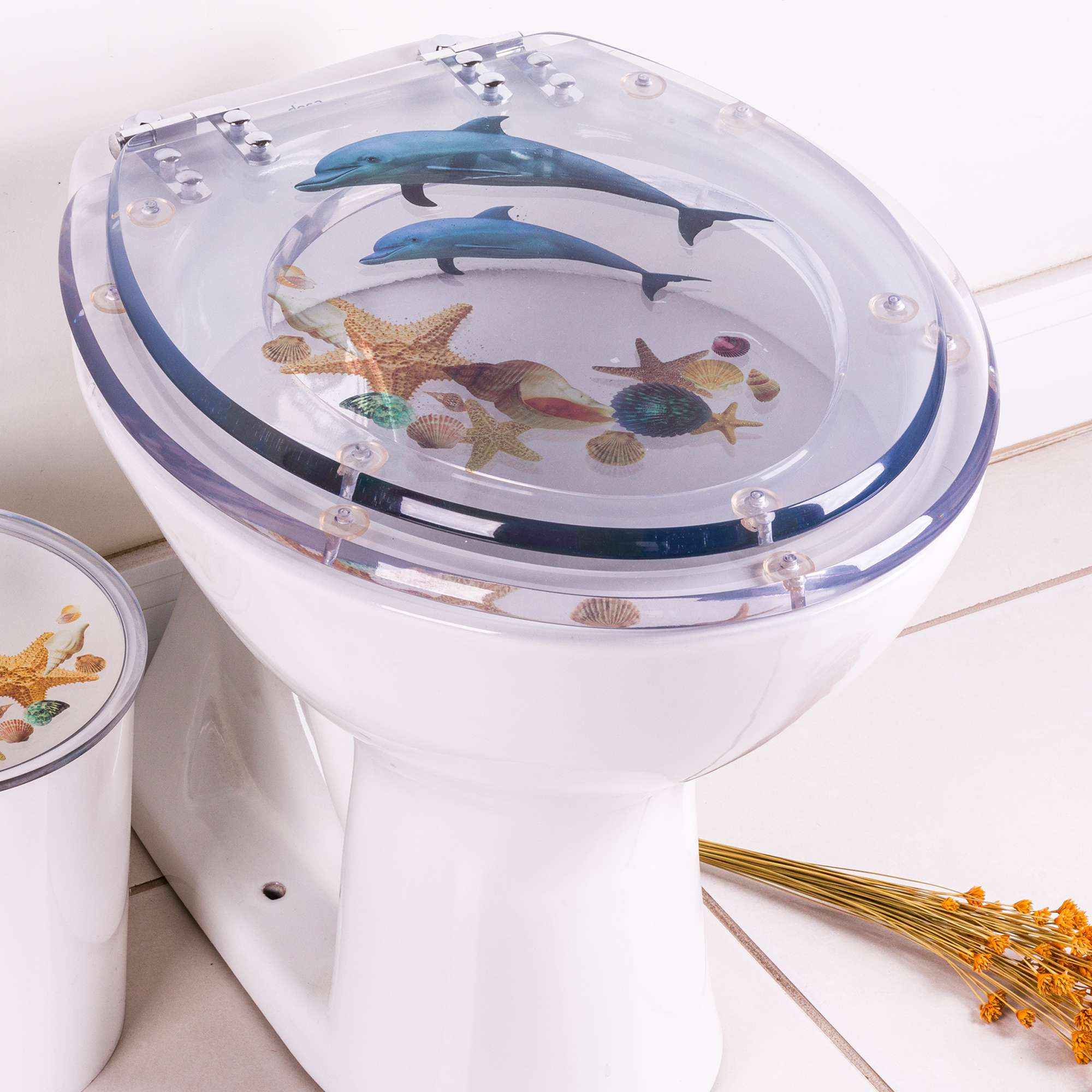 Tampa De Vaso Acrilico Decorada Golfinho Estrela Do Mar é a escolha perfeita para seu banheiro. O Assento Sanitário Poliéster é considerado o melhor tipo de assentos sanitários do mercado pelo seu acabamento impecável e excelente durabilidade.