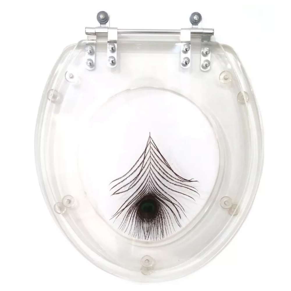Tampa De Vaso Acrílico Transparente Decorada Pena De Pavão é a escolha perfeita para seu banheiro. O Assento Sanitário Poliéster é considerado o melhor tipo de assentos sanitários do mercado pelo seu acabamento impecável e excelente durabilidade.