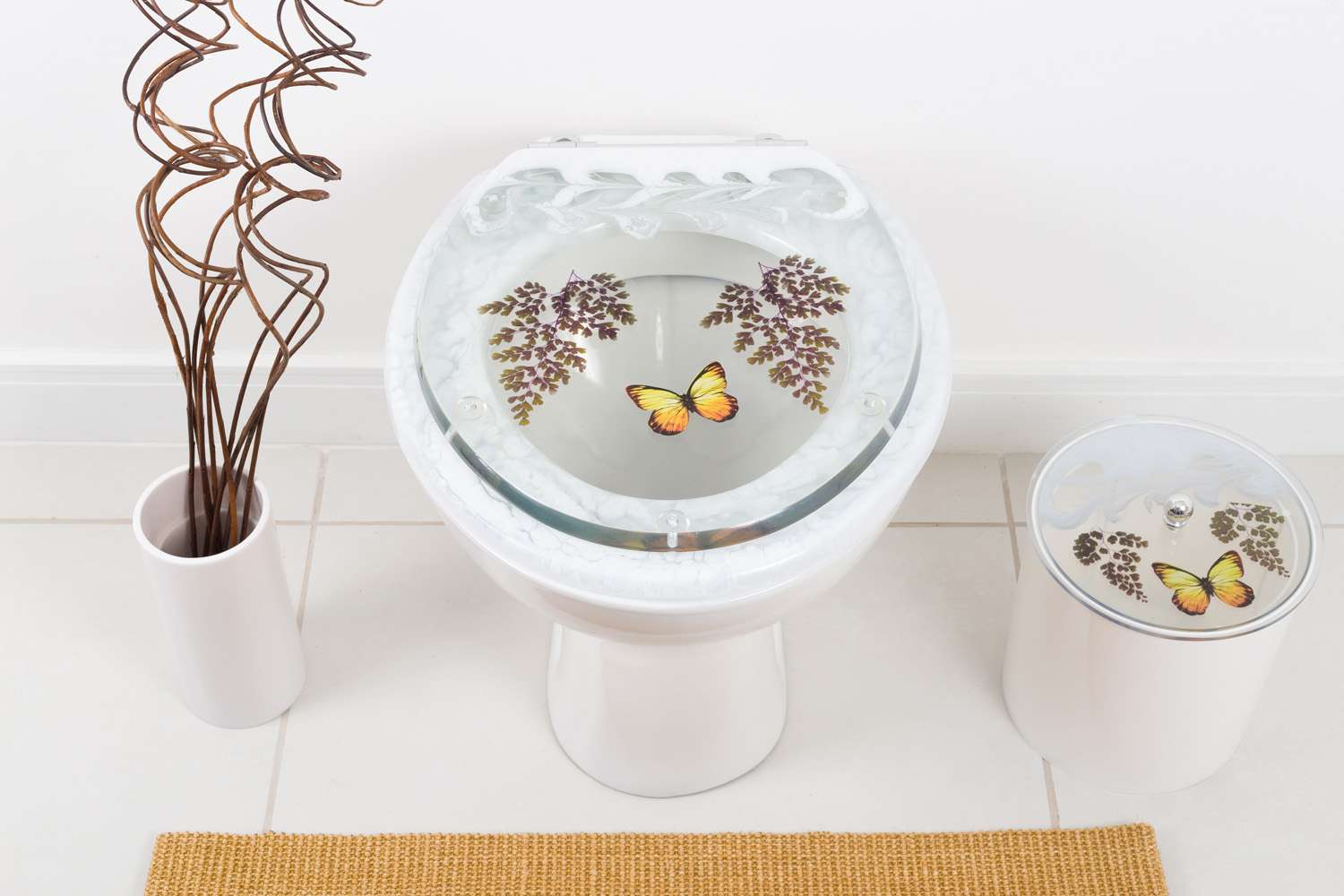 Assento Sanitário de Poliester com lixeira de mesma decoraçao.