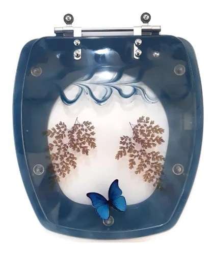 Assento Sanitário fabricado em resina virgem de Poliéster com decoração de Avencas e Borboleta inédita e exclusiva e com acabamento de superfície polido de alto brilho.
