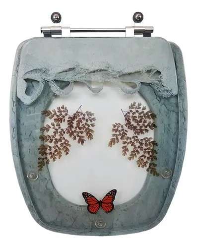 Este produto é transparente com decoração, fica lindo no banheiro. O assento (parte onde senta) é marmorizado verde e a tampa é transparente com decoração de borboleta.