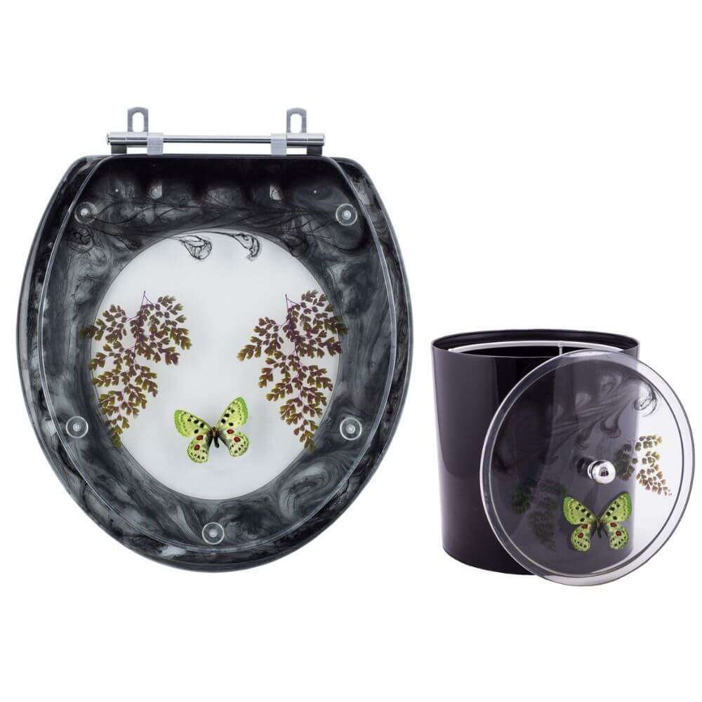 Tampa de Vaso e Lixeira Decorada Borboleta Preto