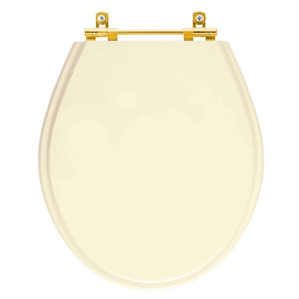 A Tampa de Vaso Laqueado Carina Bone para bacia Ideal Standard com Ferragem Dourada é a opção ideal para quem busca combinar funcionalidade com elegância em seu banheiro.