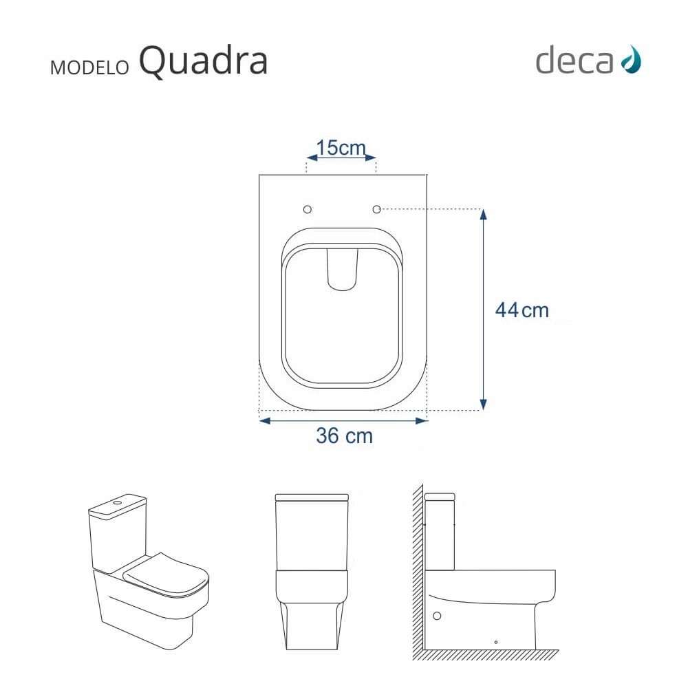 Instalação Simples e Rápida: Com todos os parafusos e componentes necessários inclusos, a instalação é rápida e descomplicada. Seu novo assento estará pronto para uso em questão de minutos. Desenvolvido especificamente para o modelo Quadra da marca Deca, com ou sem caixa acoplada, proporciona um encaixe perfeito, oferecendo estabilidade e conforto durante o uso.