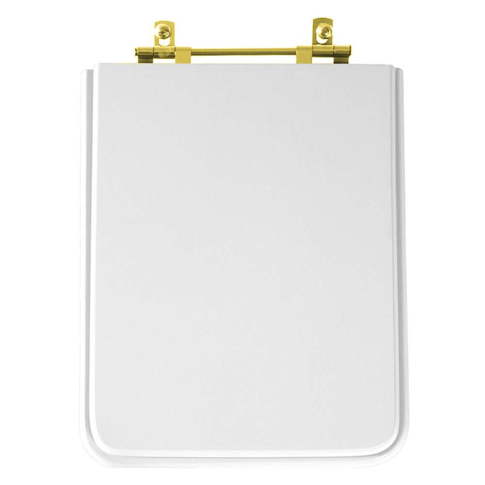 Itens inclusos: assento e tampa de resina de poliéster e ferragem completa na cor dourada. Produto completo, pronto para instalar no vaso sanitário.