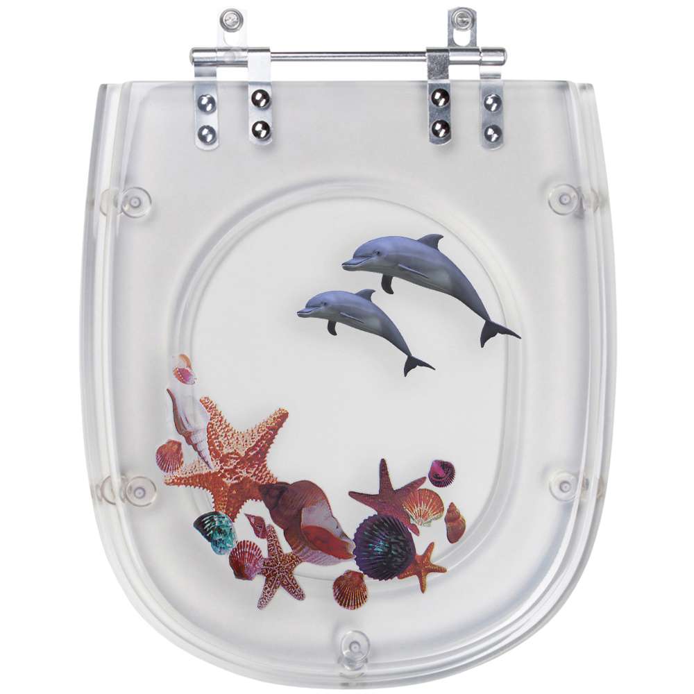 A Tampa de Vaso Poliéster Decorada Golfinho e Conchas Dona Beja para louça Santa Clara é a opção ideal para quem busca combinar funcionalidade com elegância em seu banheiro.